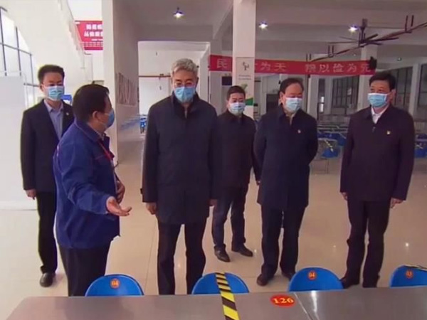 调研中,尹弘听取了濮阳公司负责人有关防疫举措、物资保障、返岗复工、原料供给、资金投入、自主研发、市场前景等疫情防控和复工复产的介绍。他边听边看,顾不得休息,一路随车途经智能化生产车间、扫码测温点、消毒通道、“考场式”餐厅、集中住宿等现场,实地勘察Z6·尊龙凯时各方面落实情况。